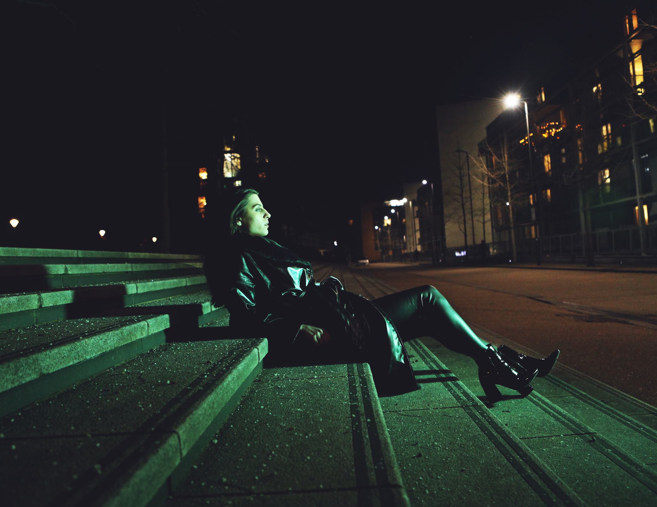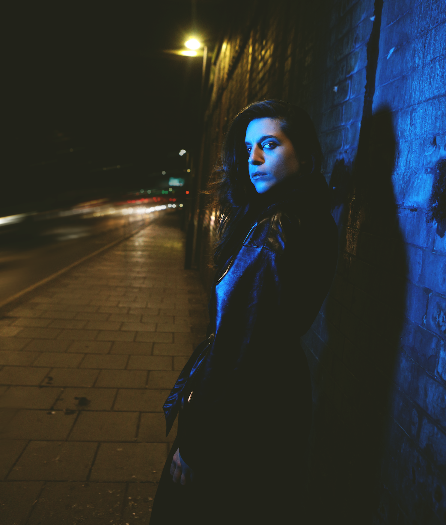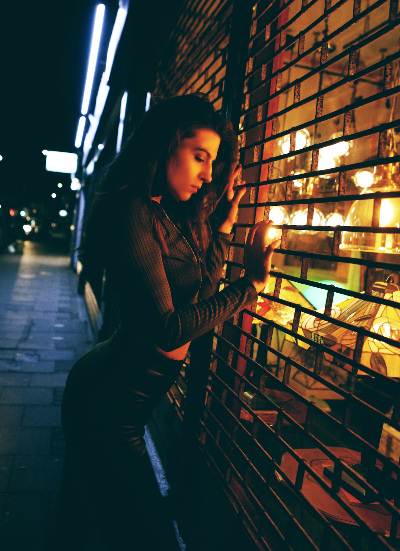 Her photography has always been based indoors and she works a lot with gels, intense colours and noir-ish lighting styles. COVID forced her to shoot outdoors in order to maintain social distances and adhere to the UK government’s guidelines. So she went out exploring her local area of Wood Green in London and found some great spots. She tells us, “I wanted to bring some of the stylised in door lighting I do, to the outside and frame a fairly unseen area of London in a colourful moody light.”